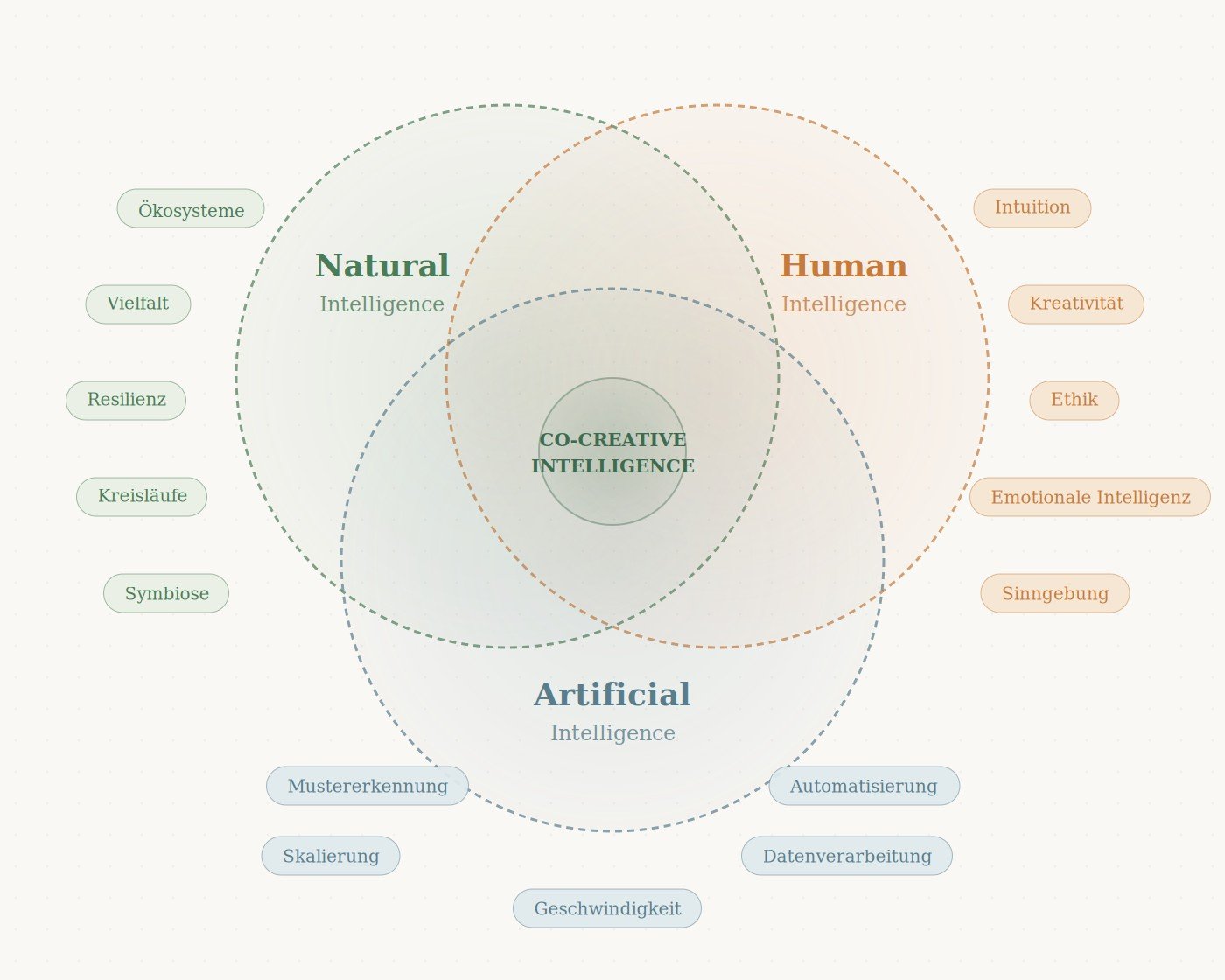 Im Spannungsfeld von natürlicher, menschlicher und künstlicher Intelligenz erkunden wir Fragen wie: Wo hilft mir AI wirklich – und wo komme ich in einen Autopiloten? Was passiert mit meiner Intuition, meiner Kreativität, meinem eigenen Denken? Und wie bleibe ich als Mensch „in the lead" – nicht nur „in the loop"?